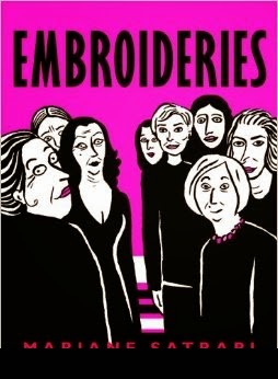 Depois de uma incursão no 25º Amadora BD terminei o fim de semana a ler Embroideries (à letra algo como "bordados"), emprestado por uma amiga. Depois de Persépolis, onde contava a história da sua infância no Irão e da sua vinda para a Europa, Marjane Satrapi continua a recorrer ao baú de memórias para escrever os seus romances gráficos. Neste seu livro, publicado há mais de 10 anos, Satrapi relata e ilustra um serão em casa da avó com mulheres de várias gerações. O que emerge das conversas travadas é o confronto entre um modo antigo de ser e as expectativas contemporâneas com toda a sua força apesar do clima político vigente naquele país. O livro tem um tom leve e bem humorado. Mas isso não impede que quem vive numa sociedade aberta e democrática perceba que são abordados temas que nada têm de ligeiro para quem não pode fazer opções de vida com a mesma liberdade: a vontade de estudar e trabalhar para assegurar a independência, a rejeição dos casamentos arranjados, a vida sexual, as expectativas de cada uma e o que é (ou foi) a realidade conjugal com que se deparou. Da leitura deste livro fica a convicção de que as pessoas são muito mais parecidas do que os regimes políticos antagónicos gostam de fazer crer.